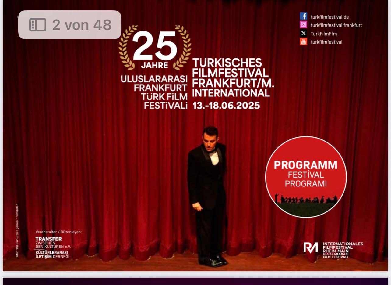 Uluslararası Frankfurt Türk Film Festivali, 13-18 Haziran 2025 tarihleri arasında 25. yılını kutlamaya hazırlanıyor. Çeyrek asırdır Türk sinemasını, toplumsal diyaloğu ve kültürlerarası etkileşimi Almanya‘ nın Hesse Eyaletin ’e taşıyan festival, bu yıl da özel programı, seçkin konukları ve anlamlı onur ödülleriyle sinemaseverlerle buluşuyor.